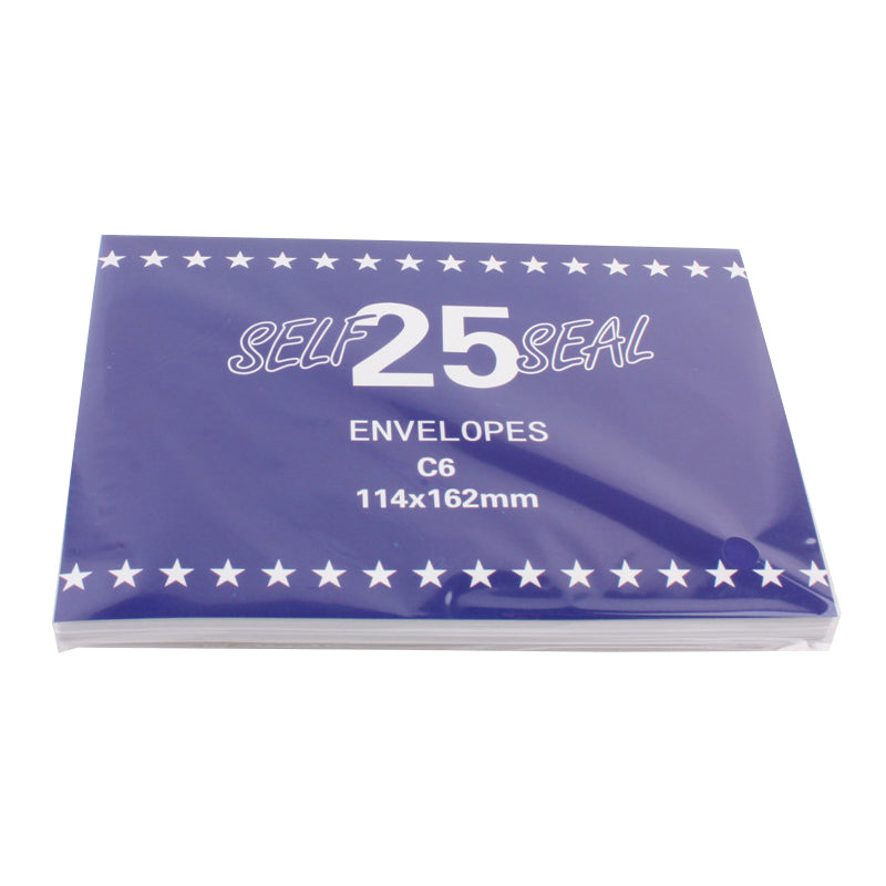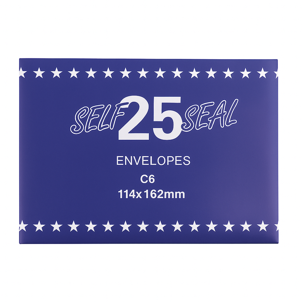 Keep your documents secure and professional with these self-sealing C6 envelopes (114×162mm). Perfect for everyday mailing needs, greeting cards, and business correspondence. Each pack contains 25 high-quality envelopes with easy peel & seal closure.